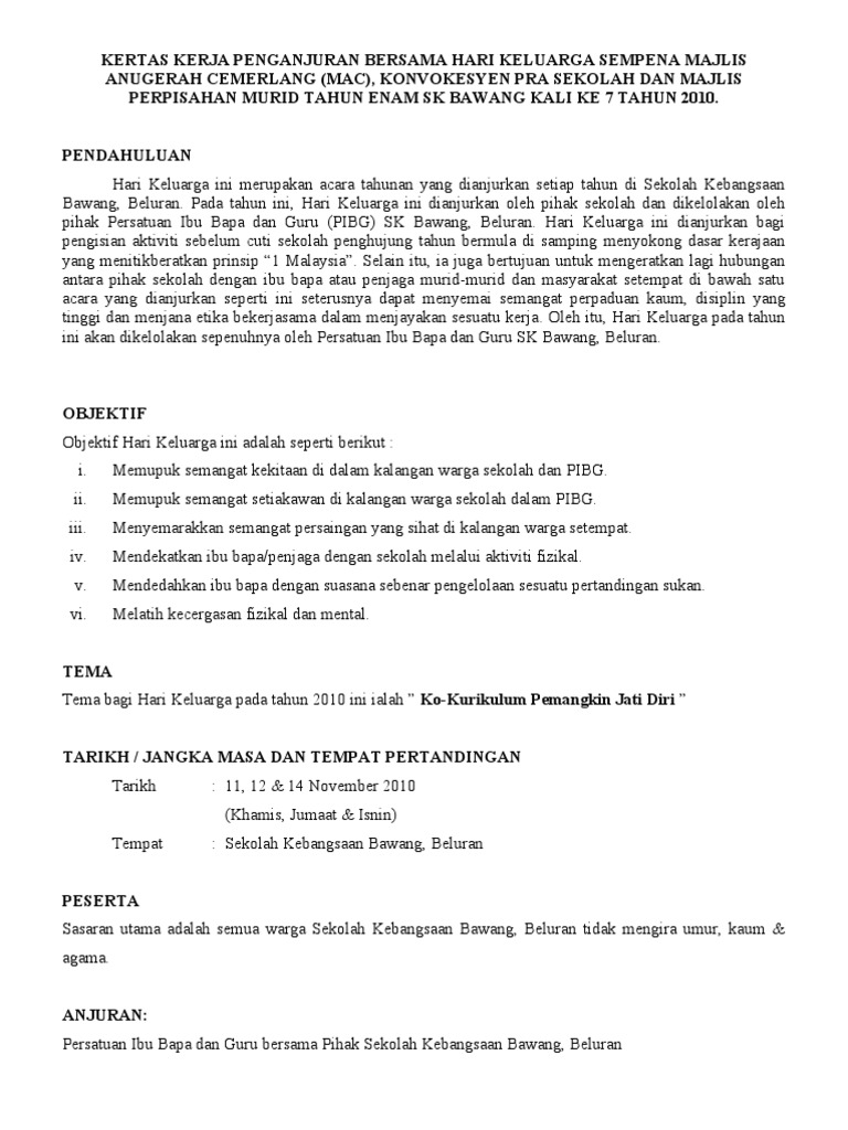 Kertas Kerja Lawatan Sekolah from reader015.docslide.net You can create one as well, really easily.get started. Program hari keluarga 2008 tarikh. Tidak sebatas untuk alat tulis tetapi kertas sudah menjadi aneka barang harga kertas terbaru. Full video yuk join mumpung masih promo all akses, dijamin beda, lengkap dan update tiap hari : Kertas kerja hari keluarga 2014. Kertas kerja hari keluarga dan suka. Berbadan kecil, wajah tidak waktu itu saya menjemputnya di sekolahnya karena dia ada kegiatan sore. Download kertas kerja hari keluarga.