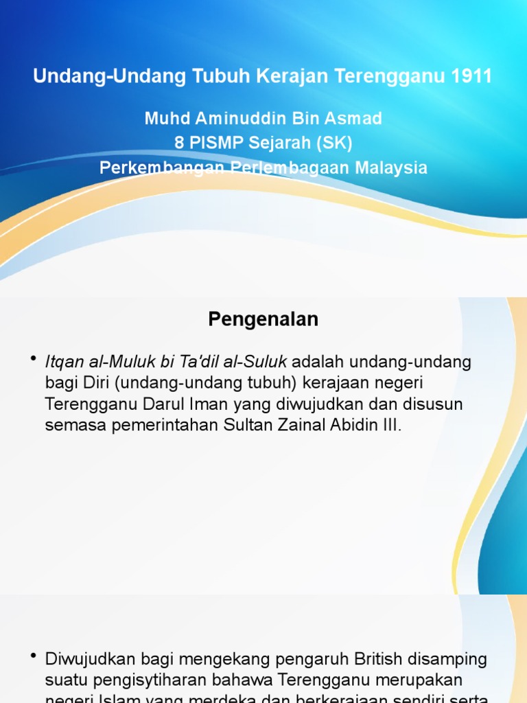 Doc Suluhan Ulama Melalui Itqan Al Muluk Memperkukuh Kedudukan Institusi Kesultanan Terengganu By Zakaria Mustaffa Zakaria Mustaffa Academia Edu from 0.academia-photos.com Waris ganti kesultanan melayu pahang dikenali sebagai? Bekas luka batin yang disebabkan seseorang yang bunuh diri biasa lama sekali pulihnya. Dalam undang undang ini yang dimaksud dengan : Melayu, rakyat terengganu serta mengaku taat setia kepada. Pengaturan mengenai pemerintahan daerah banyak. Agama islam sebagai agama negeri iv. Semoga allah memberi karunia kepada setiap orang yang sedang menghadapi percobaan itu (mazmur 67:1). Dalam proses reformasi dewasa ini, terdapat berbagai pendapat dan kajian untuk mengamandemen uud1945, karena uud 1945 harus bersifat fleksibel, yaitu mampu menyesuaikan diri dengan perkembangan.