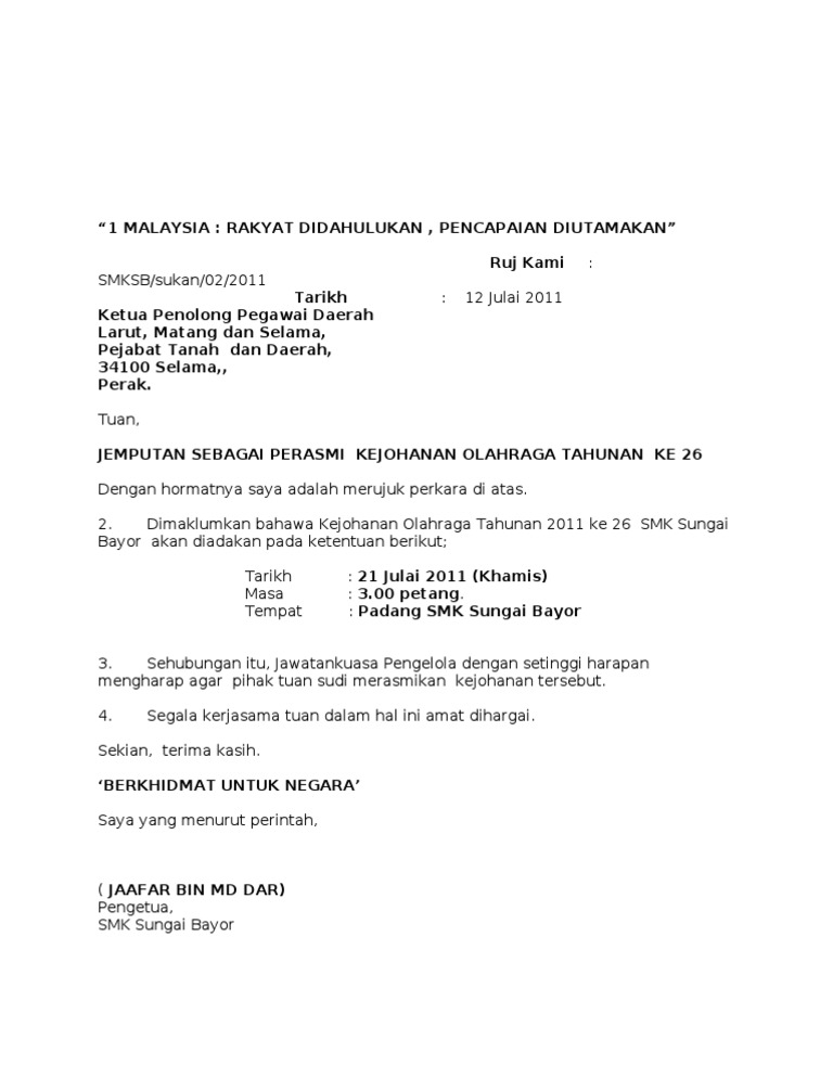 Contoh surat jemputan gotong royong via www.slideshare.net. Sekolah menengah sultan abdul jalil shah, seberang perak, 36000 teluk intan, perak kod sekolah : Semua contoh ini ada karena kebutuhan akan surat ini memang besar. Dalam dunia bisnis, penawaran akan selalu ada antara pihak satu dengan pihak lainnya. Contoh surat jemputan pengarah ke majlis rasmi institusi (ipg).